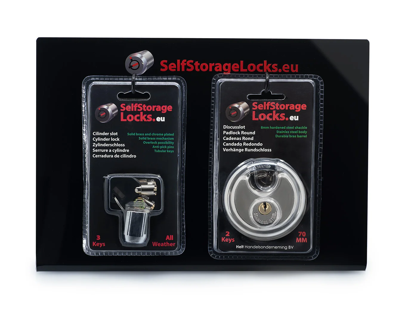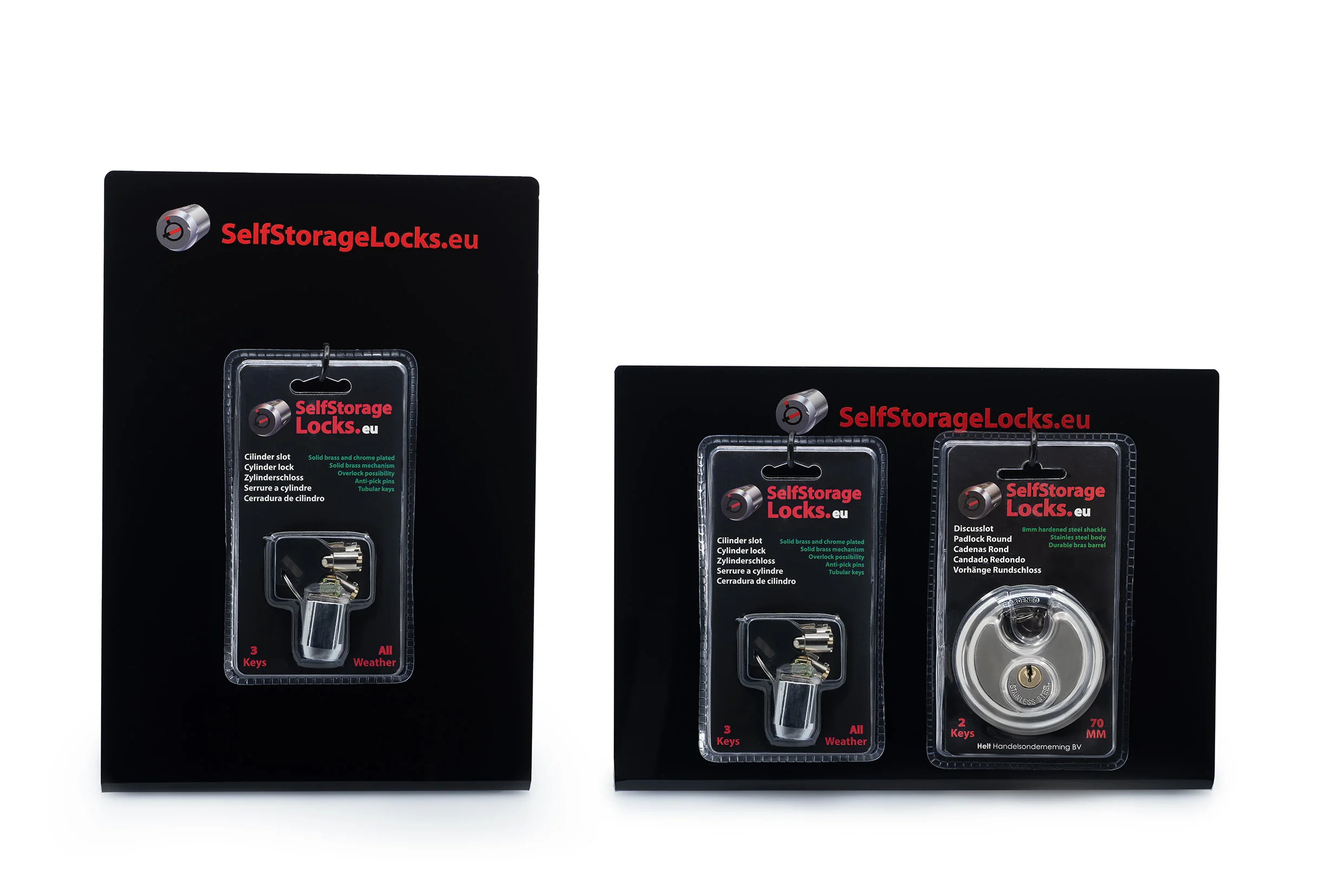 Nieuw! Balie Display Gratis Gratis Balie Display Balie display in A4 portrait of landscape model. Het display kan kosteloos worden besteld voor op de balie van uw vestiging. Displaysloten in blisterverpakking. Sloten voor uw voorraad worden in kartonnenverpakking geleverd. Bestellen?Mail aub naar info@selfstoragelocks.eu Shop Now